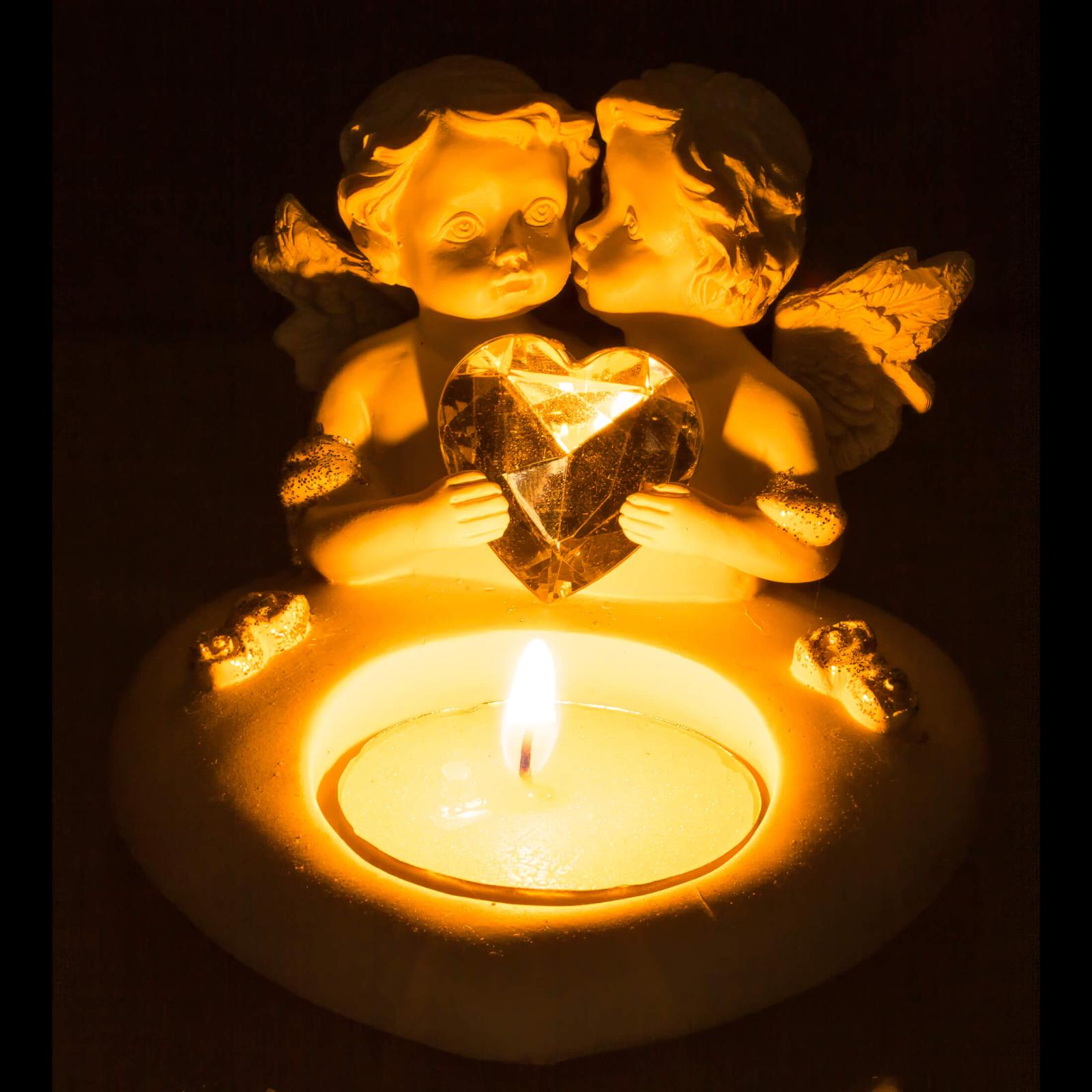 Teelichthalter Herz mit Engelfigur Paar und Kristallherz A