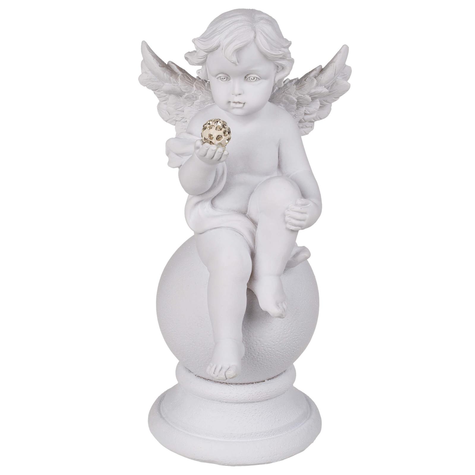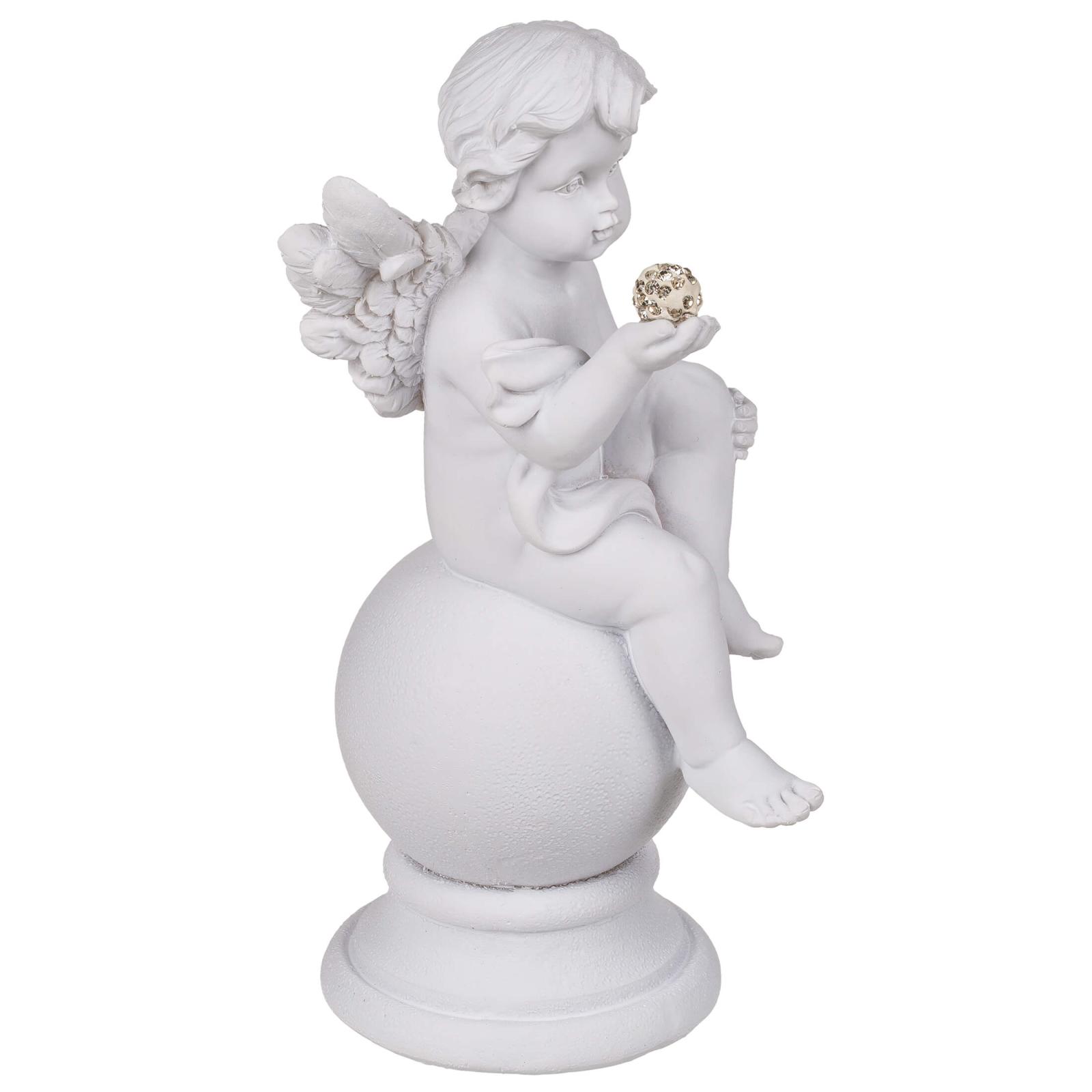 Zwei edle Engelsfiguren auf Kugel sitzend, aus weißem Polyresin mit funkelnder Kristalldeko für eine stimmungsvolle Dekoration. Perfekt für Weihnachten oder als Geschenk. -2 Stück-