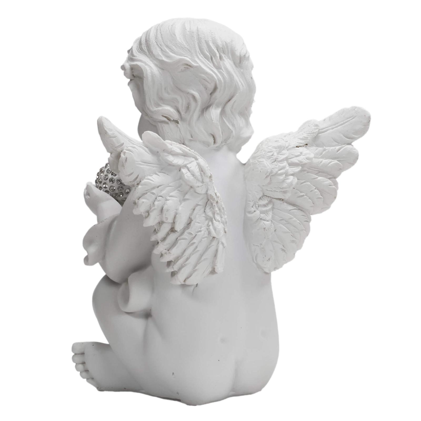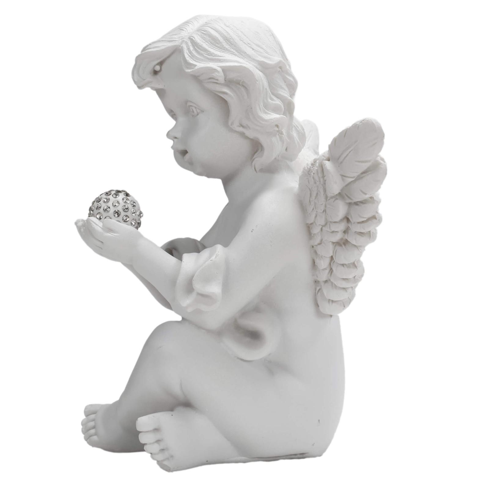 Weißer sitzender Polyresin Engel mit Kristalldeko B