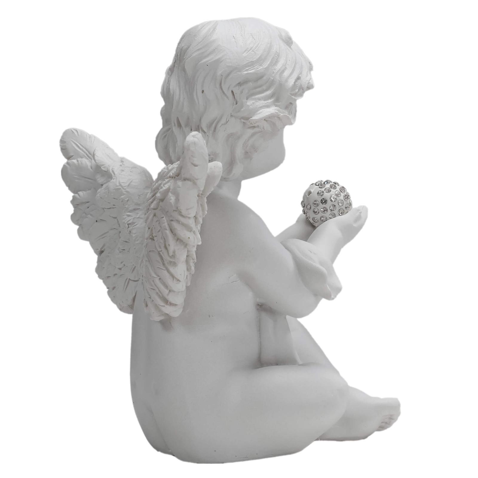 | Titel | Weißer sitzender Polyresin Engel mit Kristalldeko B |