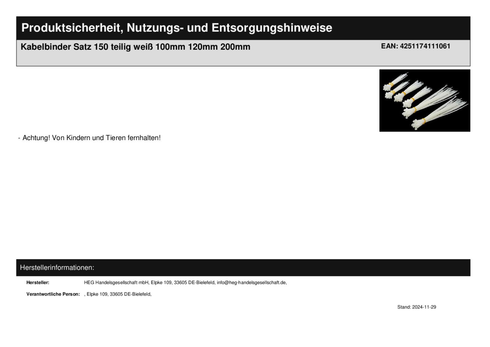 | Titel | Kabelbinder Satz 150 teilig weiß 100mm 120mm 200mm |