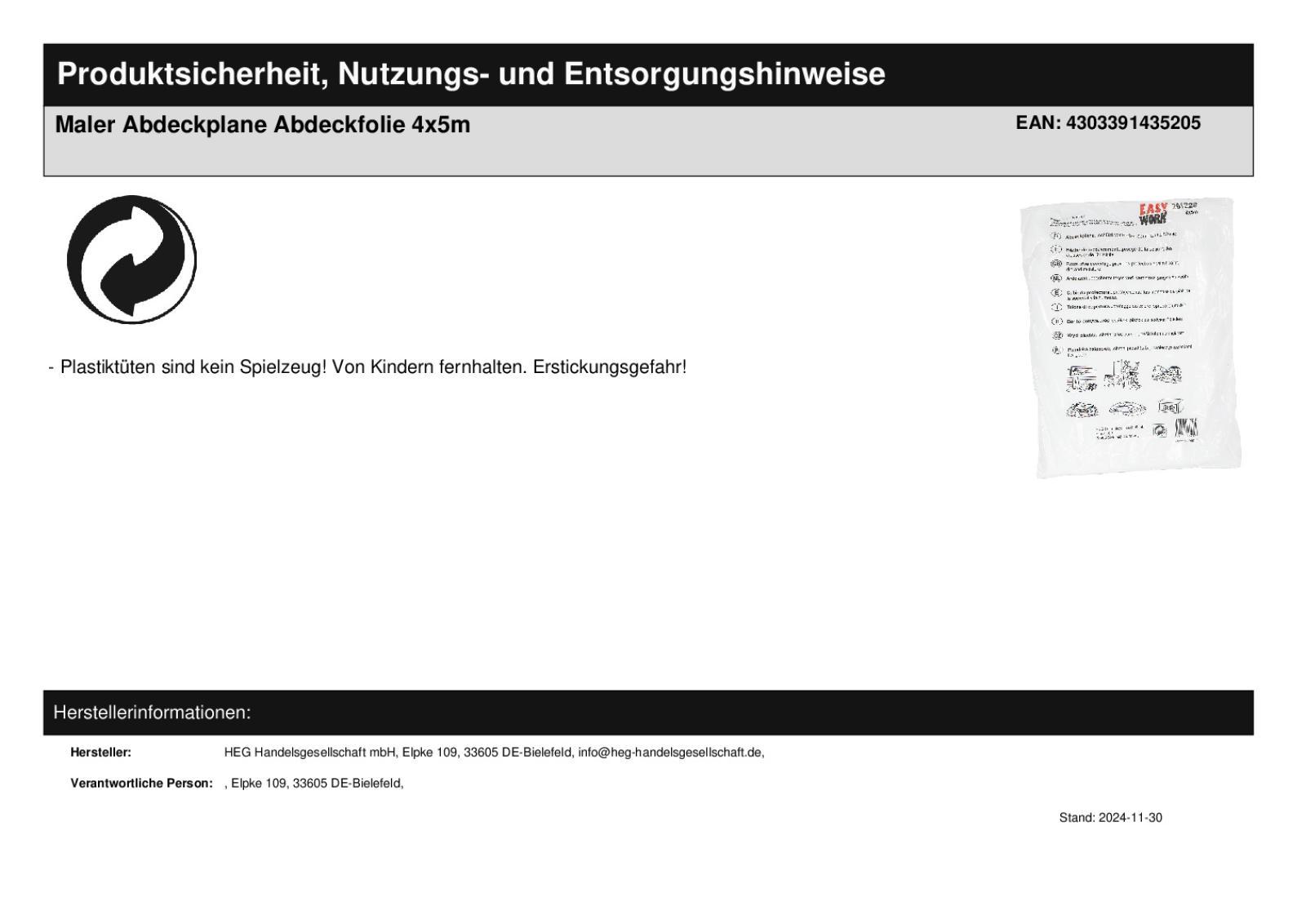 HEG Handelsgesellschaft mbH Elpke 109 33605 Bielefeld info@heg-handelsgesellschaft.de WEEE-Nummer: 40447121