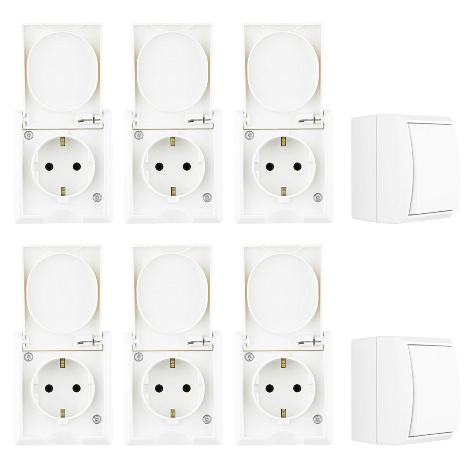 8 teiliges REV Feuchtraum Steckdosen Schalter Set Aquaform Weiß