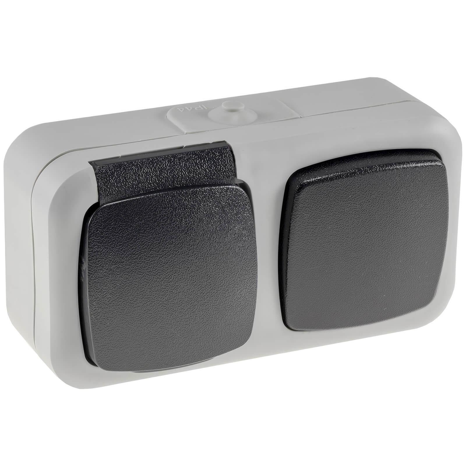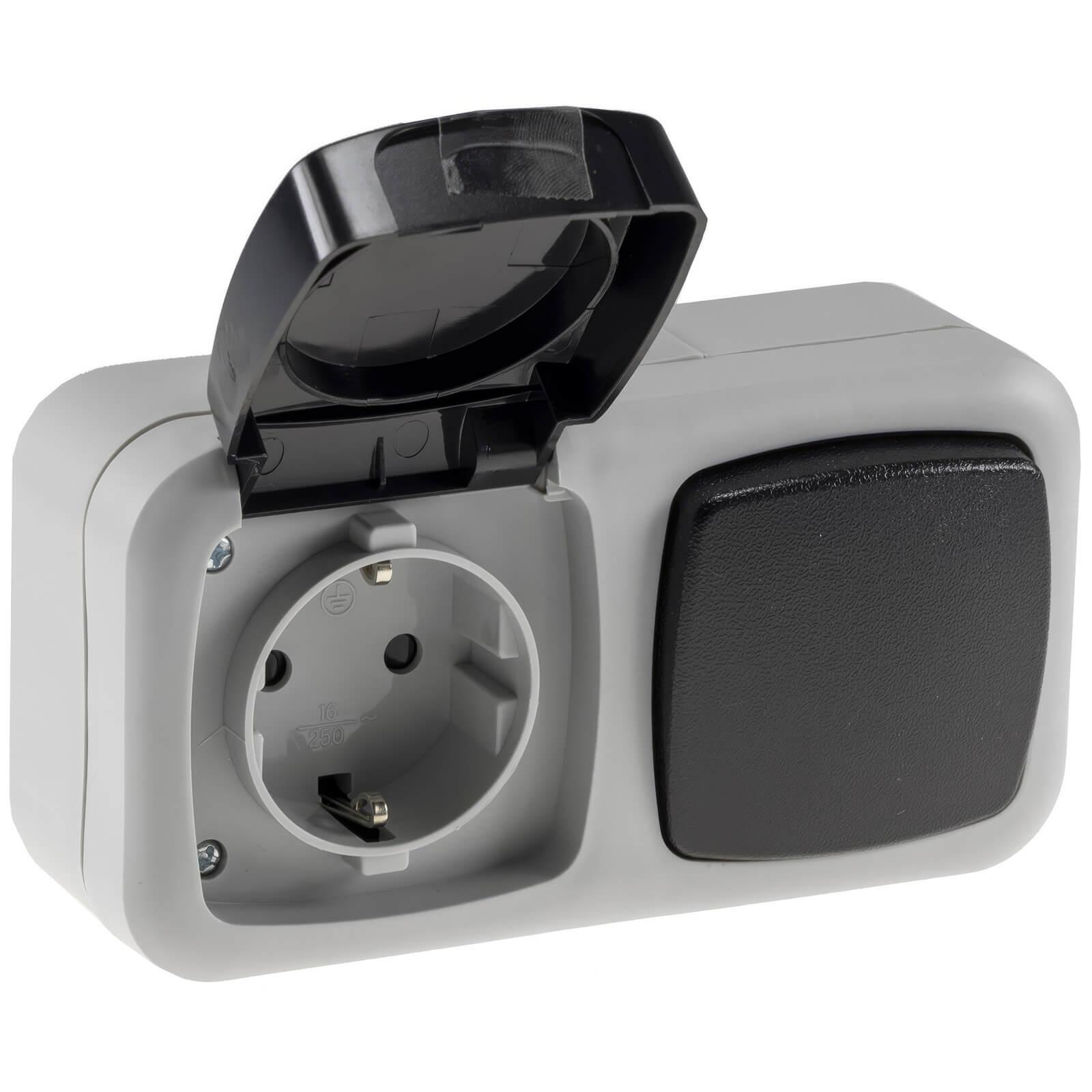 Feuchtraum Kombination Steckdose Schalter IP44 Aufputz grau