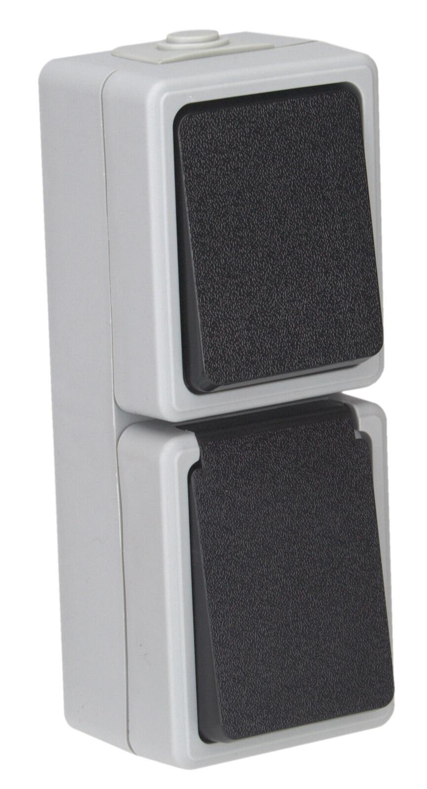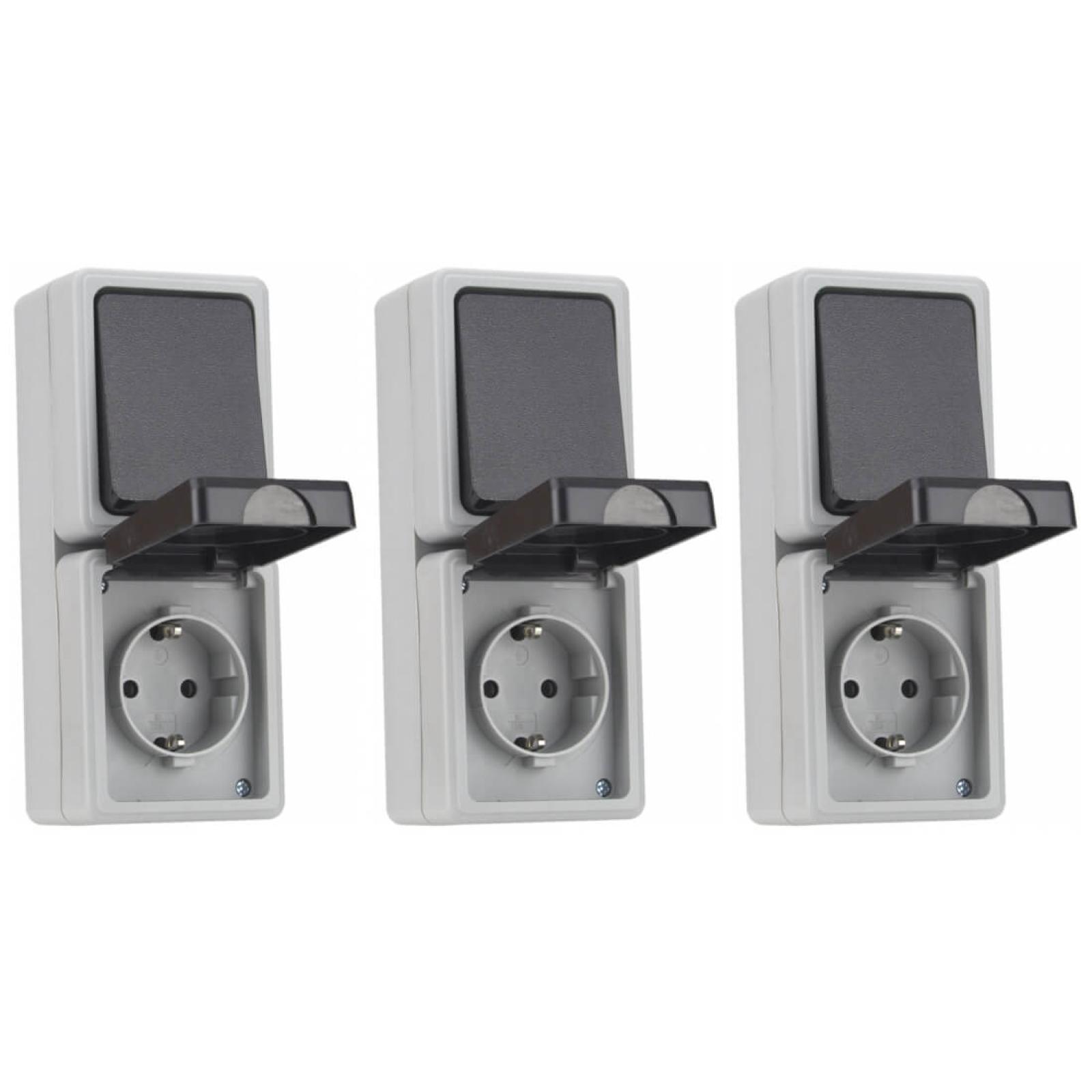 TAFF Feuchtraum Kombination Steckdose Schalter vertikal Aufputz IP44, 3er Set
