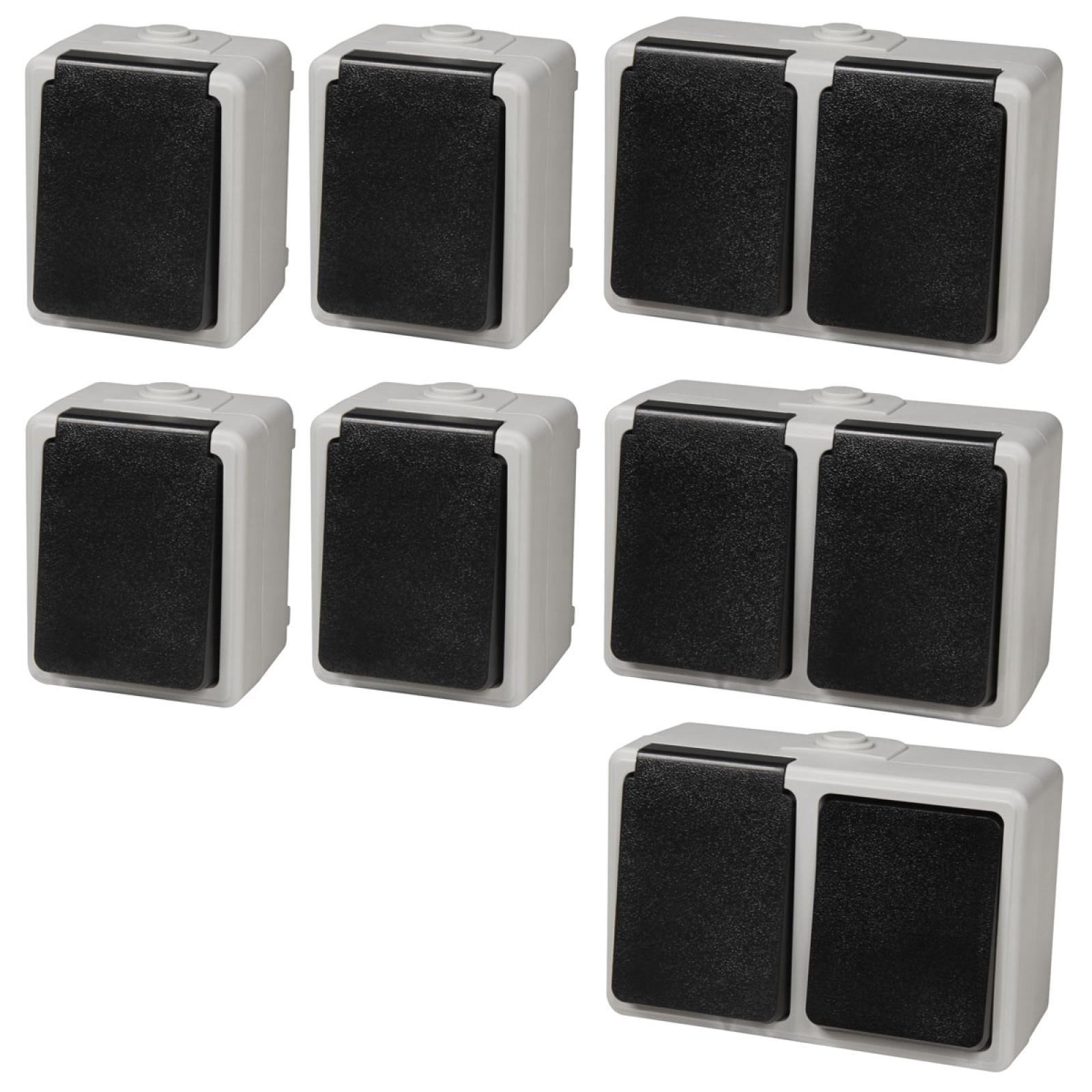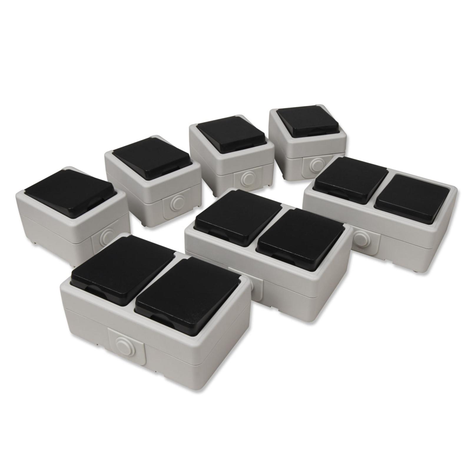 TAFF Feuchtraum Schalter Steckdosen Set Werkstatt 7 teilig grau IP44