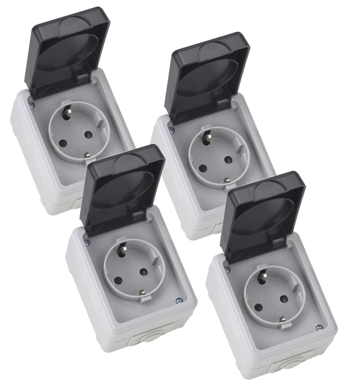 TAFF Feuchtraum Steckdose IP44 Aufputz grau, 4er Set