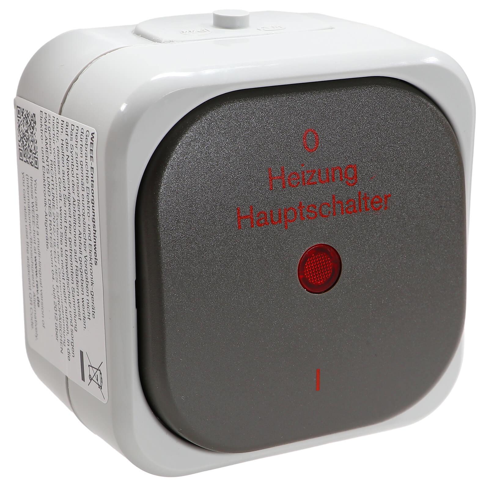 REV Aquatop Heizung Hauptschalter Notschalter Aufputz IP44 - Farbe: Grau