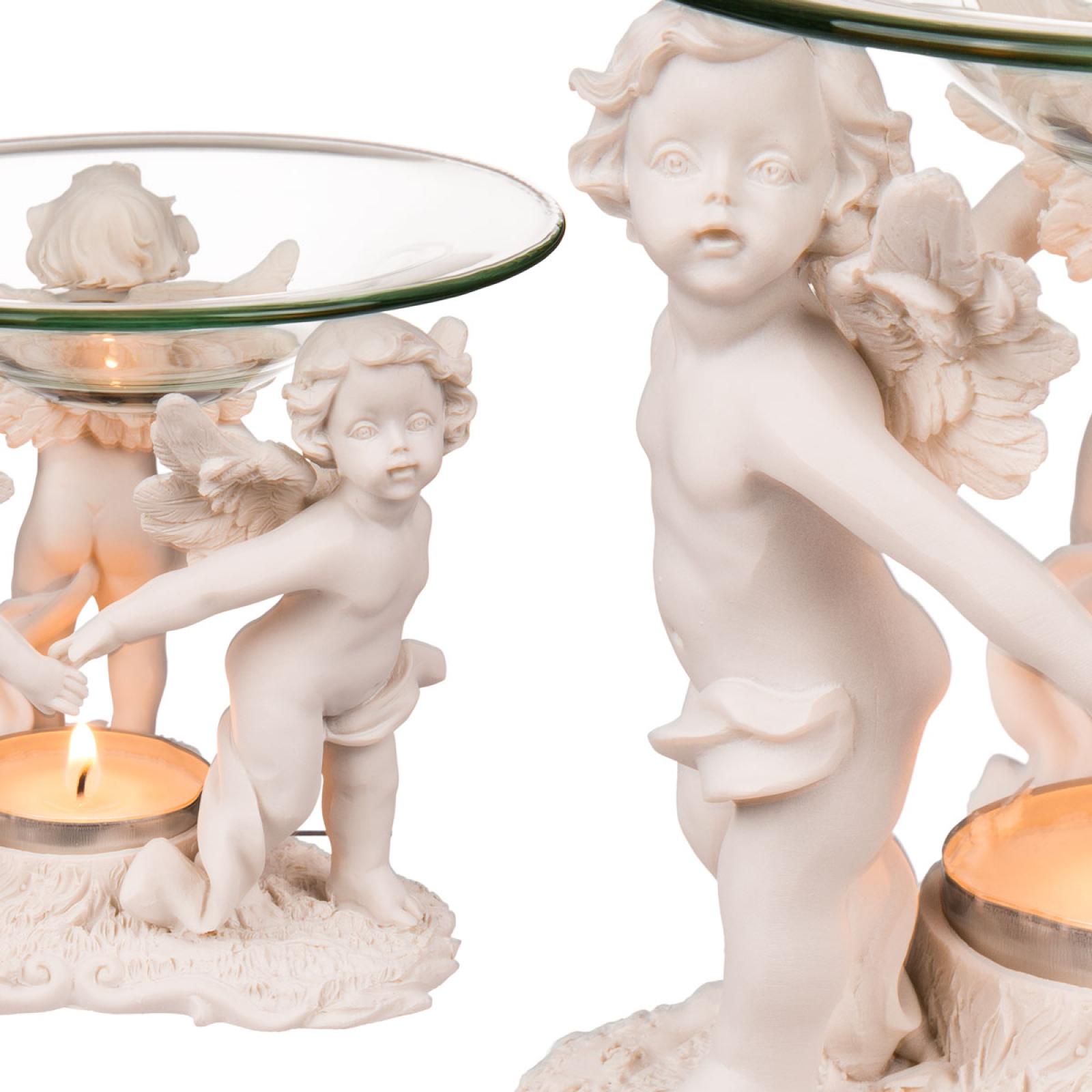 | Titel | Duftöl Aromalampe drei stehende Engel mit Glasschale - Deko und Duftlampe |