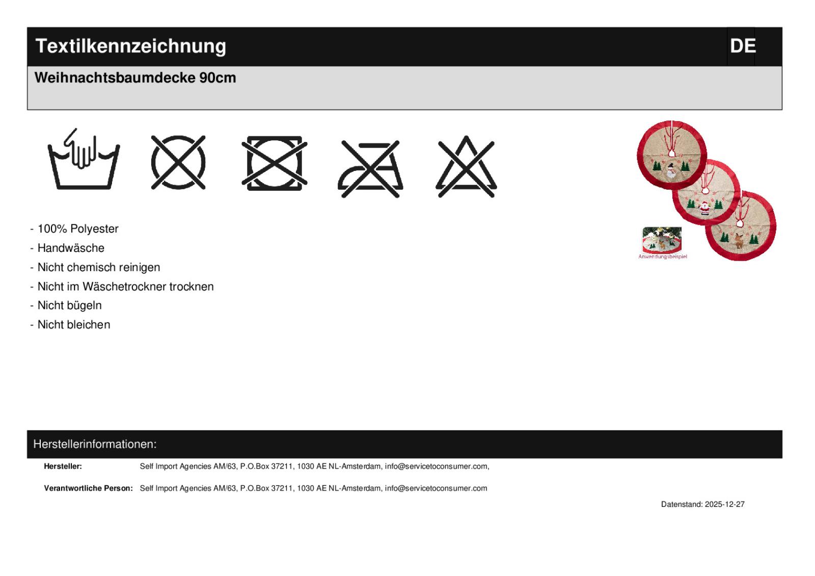 | Titel | Weihnachtsbaumdecke 90cm |